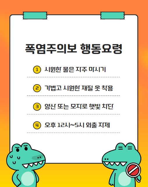 폭염은 단순히 더운 날씨 이상의 위험을 동반합니다. 아래는 폭염주의보 기간 동안 주의해야 할 주요 사항입니다.