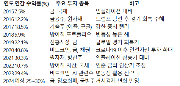 - 금 및 비트코인의 비중을 확대합니다.(인플레이션 헤지)