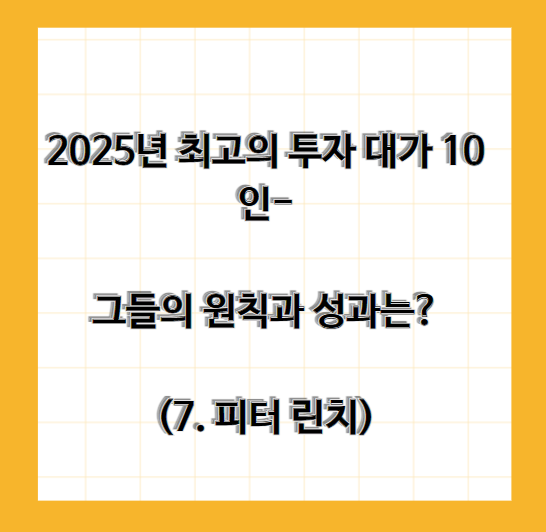 피터 린치는 단순한 '투자자'가 아니라, 성장주 투자의 대가입니다.