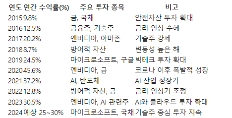 - 미국 경제 둔화 및 연준의 금리 정책 변화 가능성을 반영한 포트폴리오 조정.