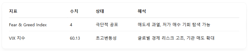 이는 시장 참여자들의 ‘집단 심리’를 읽는 데 매우 유용한 도구입니다. - 지금은 명백히 ‘공포’가 극대화된 구간입니다.