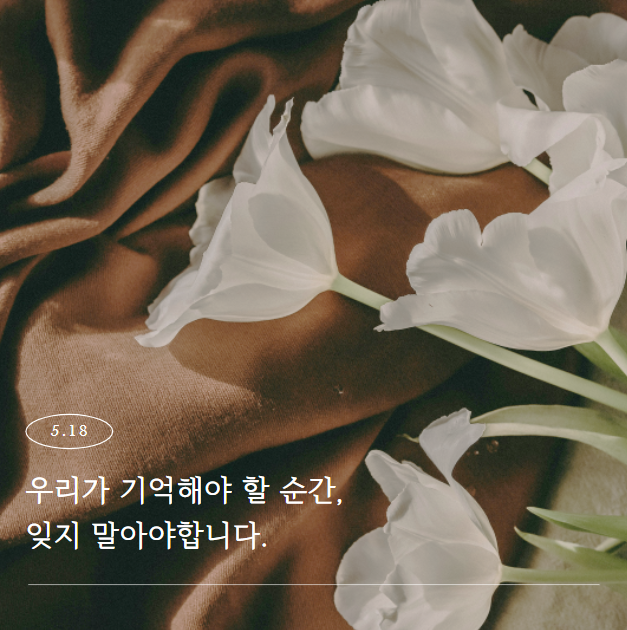 내용: 한강, 신경숙 등 작가들의 5.18 관련 문학 작품과 생생한 다큐멘터리 영상.