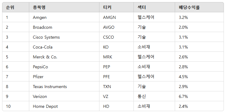 2. SCHD 편입 종목 기본정보 (2024년 기준)
