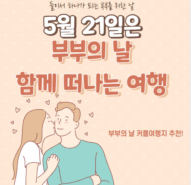 사전 계획: 부부의 날은 5월 21일로 평일일 가능성이 높으니, 주말을 활용해 여행이나 이벤트를 계획하세요.